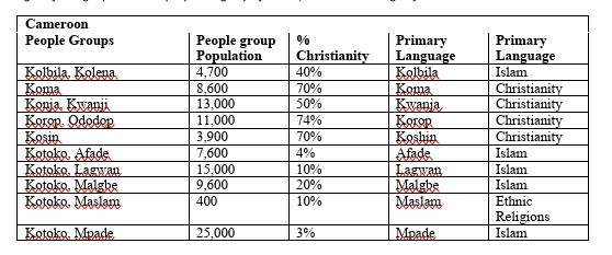 • Pray that the Lord will reveal Himself to the Kolbila, Koma, Konja, Korop, Kosin, and Kotoko people as they worship idols, so their hearts may be prepared to receive the good news of Jesus Christ. May their eyes be opened to the truth and love of God. Isaiah 45:22 - “Turn to me and be saved, all you ends of the earth; for I am God, and there is no other.”