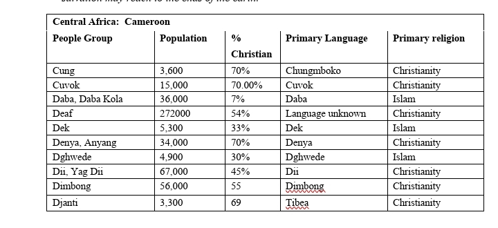 • Lift up the unreached and under-reached groups such as the Daba, Dek, and Dghwede. Pray for open hearts, bold witnesses, and strategic outreach—especially in Muslim-dominated areas.